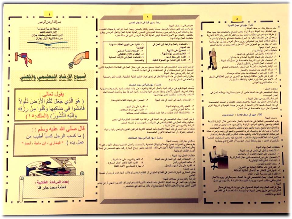 إعلام الثانوية الأولى بجازان برنامج اسبوع الارشاد التعليمي المهني في الثانوية الاولى بجازان