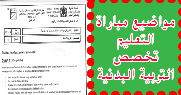 مواضيع مباراة التعليم 2016 2017 2018 تخصص التربية البدنية