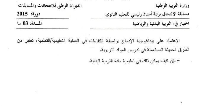 موضوع امتحان التربية البدنية لمسابقة استاذ رئيسي في التعليم الثانوي 2015