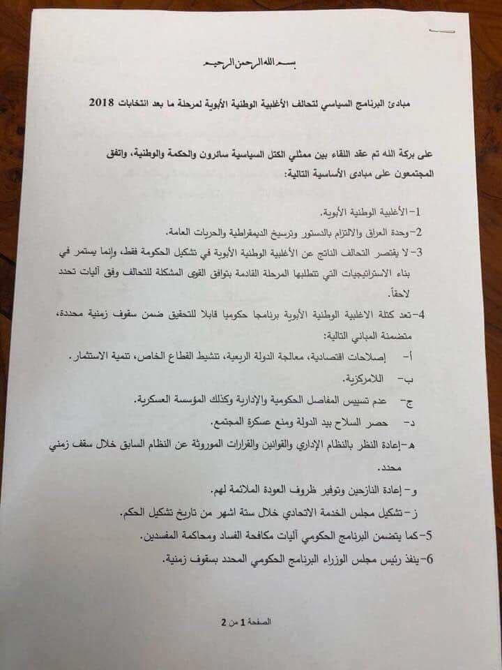 Hussam Al Mosawi On Twitter مباديء التحالف لتشكيل الاغلبية الوطنية بين قوائم سائرون الحكمة الوطنية