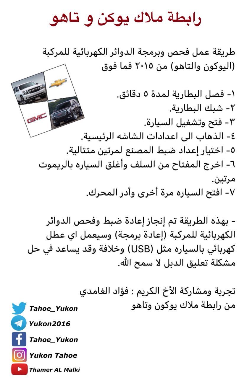 ملاك تاهو ويوكون En Twitter طريقة برمجة اليوكون والتاهو في حال تعطل Usb أو وجود خلل لا سمح الله في إحدى الدوائر الكهربائية T Y2015up