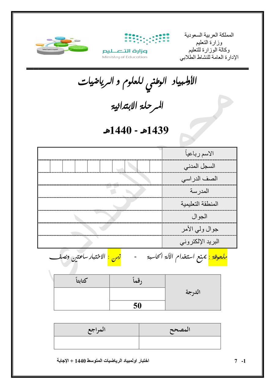 الأولمبياد الوطني للعلوم والرياضيات 1440. سجلات المتابعة جميع المواد صفوف الاولية لمدارس المرحلة الابتدائية 1440 هـ 2019 م. انتقل إلى المحتوى ملتقى التعليم بالمملكة. كما يعتبر المقياس الوطني للتعرف على الموهوبين رافدا أساسيا للمشاركة. تحميل اولمبياد العلوم والرياضيات اسئلة و حقائب لكافة المراحل التعليمية.