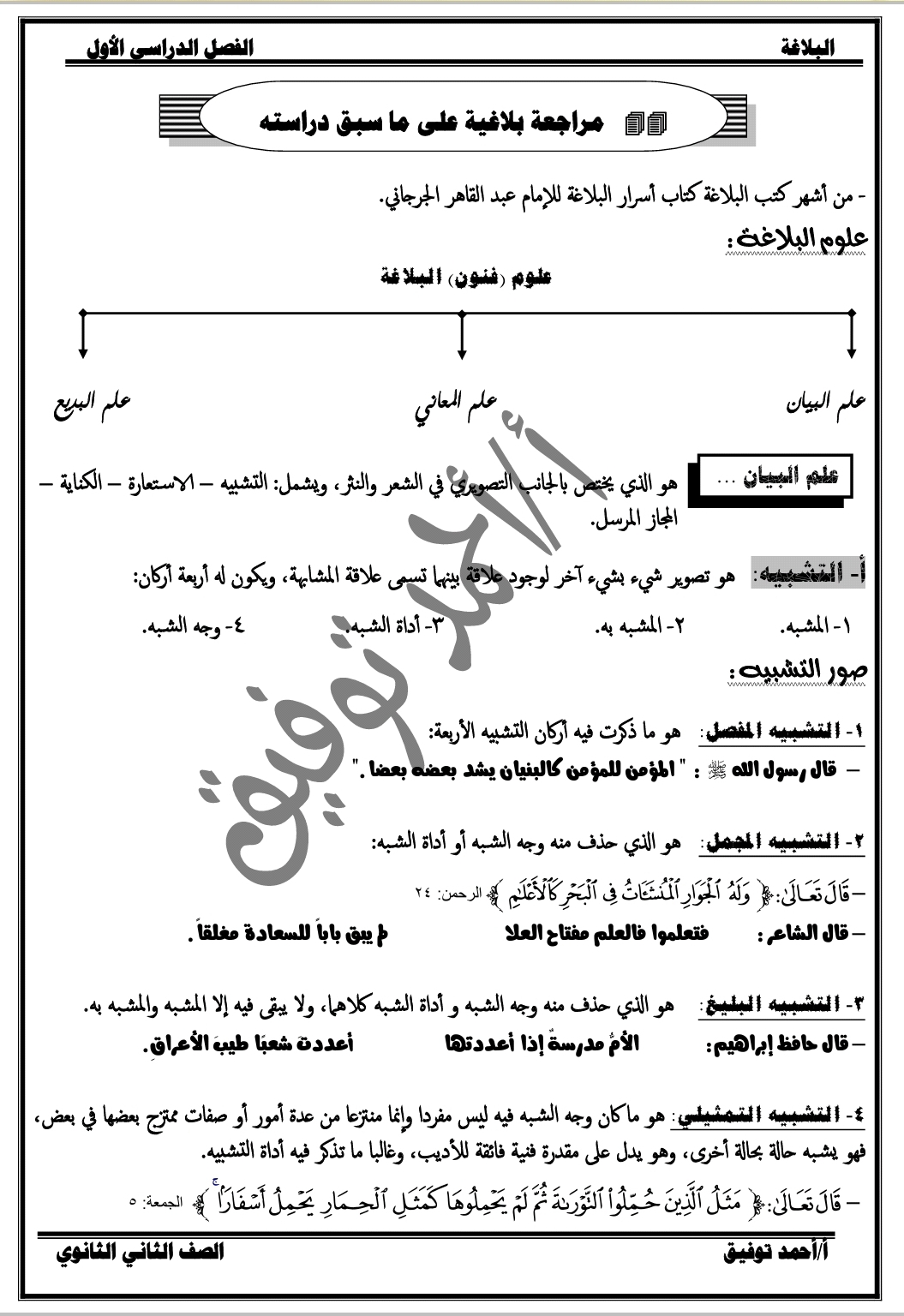 أقوي مراجعة نهائية في اللغة العربية الصف الثاني الثانوي 2018