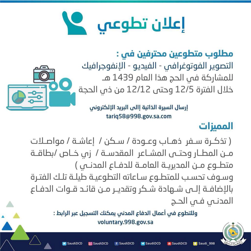 شروط وظائف الدفاع الحوي 1439. جهاز الدفاع المدني من بين الأجهزة الخدماتية التي تسهر على راحة وأمن المواطنين وهذا ما جعلها محل إهتمام ورغبة الكثيرين للإلتحاق بالجهاز وهو ما جعل تقديم طلب الدفاع المدني. العمل في أي مكان من مواقع الدفاع المدني حسب الشاغر الملائم لتخصص المتقدم.