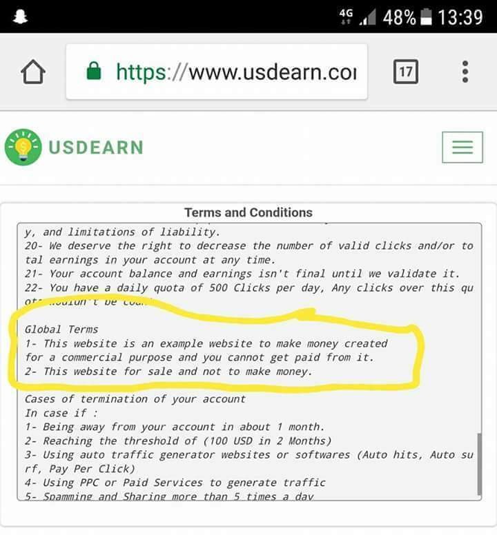 موقع Usdearn و الإحتيال القانوني القانون لا يحمي المغفلين صور
