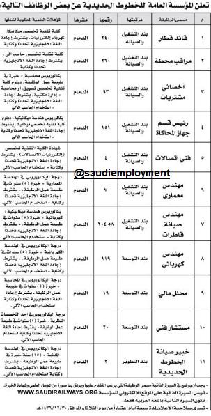توظيف السعودية On Twitter تعلن المؤسسة العامة للخطوط الحديدية عن توفر وظائف شاغرة بمدينة الدمام للتفاصيل بالإعلان المرفق Http T Co Hkgz5cpdcw