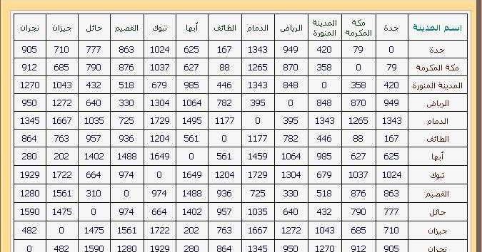 في هذا الرسم البياني ستجد المسافات بين مدن المملكة العربية السعودية موضحة بصورة تفصيلية وبشكل واضح كما ستجد أن الرسم سيوضح لك المسافة بين هذه المدن وبين أشهر المعالم السياحية والدينية لتسهيل التنقل على الزوار والسياح وهذه المعلومات من الموقع الرسمي الهيئة العامة. جدول المسافات بين مدن المملكة السياحه والسفـر. طريقة قياس المسافة بين المدن السعودية باستخدام الهاتف المحمول. يحتوي الجدول التالي على قائمة بالمسافات الفاصلة بين أغلب مدن المملكة بالكيلو متر.