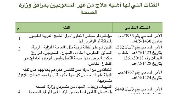 و يقصد به تحديد الفئات التى لها أحقية العلاج المجانى بمستشفيات وزارة الصحة وفقا للتعاميم الواردة من المقام السامي ومقام وزارة الصحة. قال الدكتور مصطفي غنيمة رئيس قطاع الطب العلاجي بوزارة الصحة.