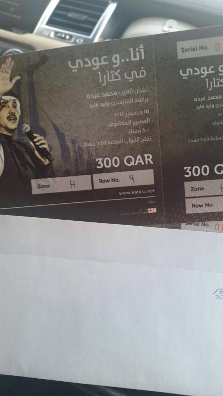 للبيع تذاكر حفلة محمد عبدة 2500 الرياض