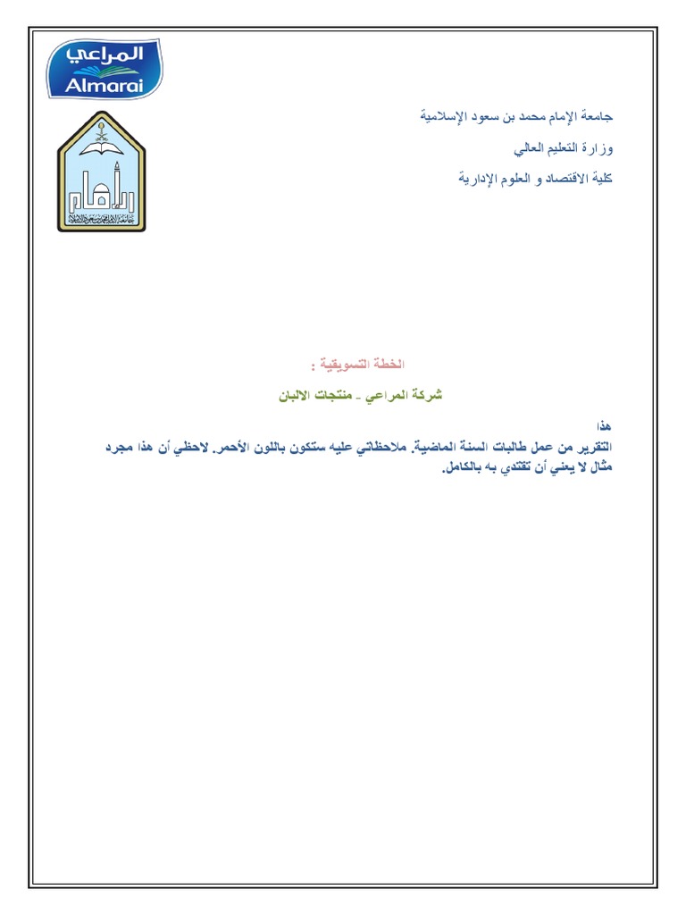 مثال على خطة تسويقية للمراعي مع الملاحظات