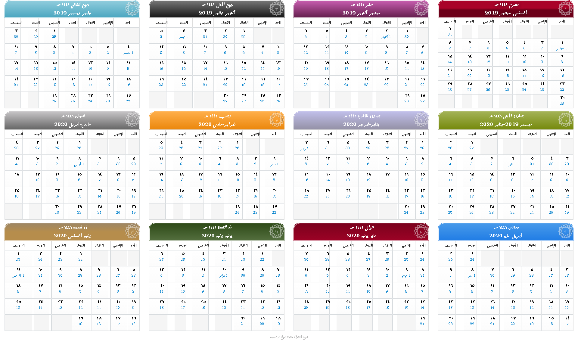 التقويم الهجري والميلادي لعام 1440 هـ 2019 م للتحميل مفتوح المصدر مجانا Algelowb Islamic Calendar Hijri Calendar 2020 Calendar Template