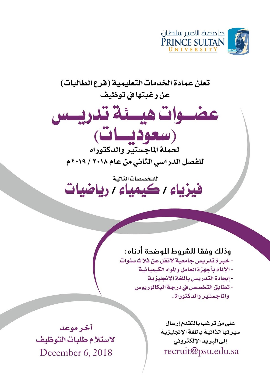 وظائف أكاديمية شاغرة للنساء في جامعة الأمير سلطان صحيفة فيفاء