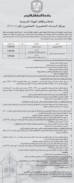 مسار A Twitter جامعة السلطان قابوس إعلان عن وظائف شاغرة للهيئة التدريسية بمركز الدراسات التحضيرية التفاصيل في مرفق الإعلان صورة أوضح في الرابط Https T Co Kktwh6y5rv Https T Co Vd0bdicgxc