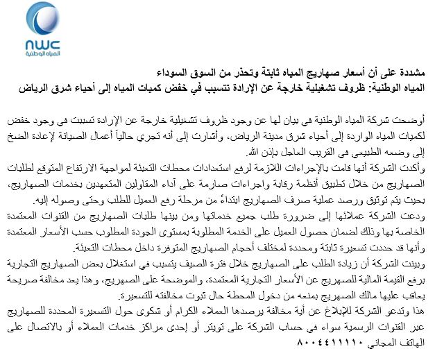 اخبار ساخنة شركة المياه الوطنية صفحة 1