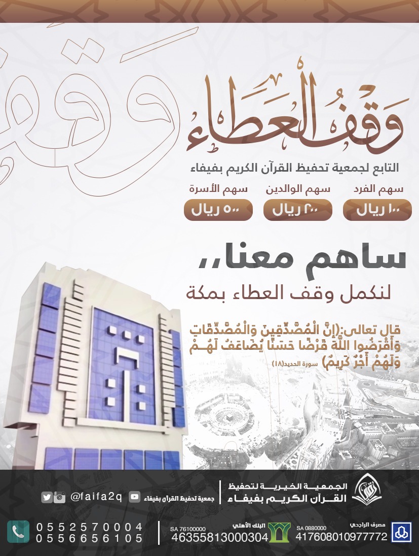 وقف الوفاء بمكة المكرمة جمعية تحفيظ القرآن الكريم بالعالية صدقتک بجوار الحرم Youtube