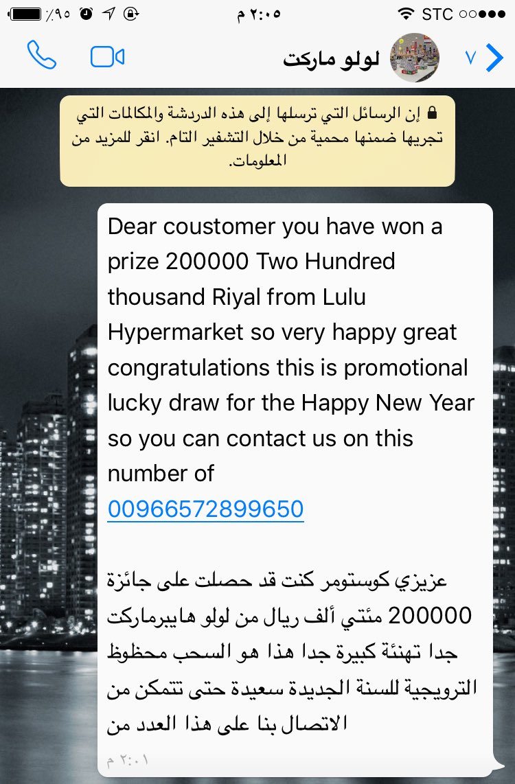 O Xrhsths أبو تركي Sto Twitter Kamnapp وصلتني اليوم رسالة على واتساب سحب جوائز والمرسل يد عي انه من سوبر ماركت لولو هايبر ماركت هل هذا الكلام فعلا صحيح ام نصب واحتيال