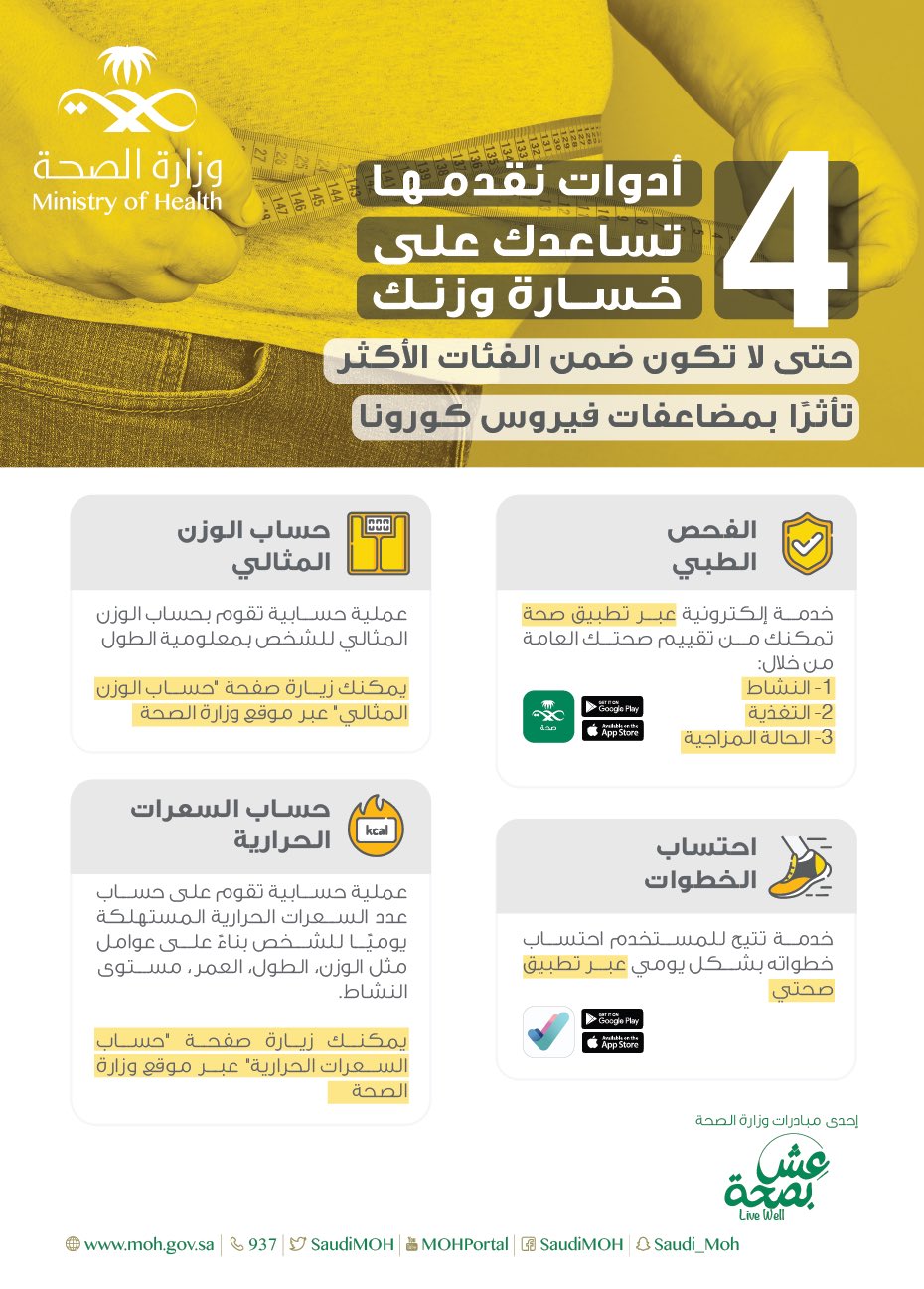 وزارة الصحة المملكة العربية. تعد بوابة وزارة الصحة السعودية واجهة إعلامية إلكترونية لنشر معلومات صحية دقيقة ومدخلا إلكترونيا لكل ما تقدمه الوزارة من. تعد بوابة وزارة الصحة السعودية واجهة إعلامية إلكترونية لنشر معلومات صحية دقيقة ومدخلا إلكترونيا لكل ما تقدمه الوزارة من. جدول السعرات الحرارية محدد.