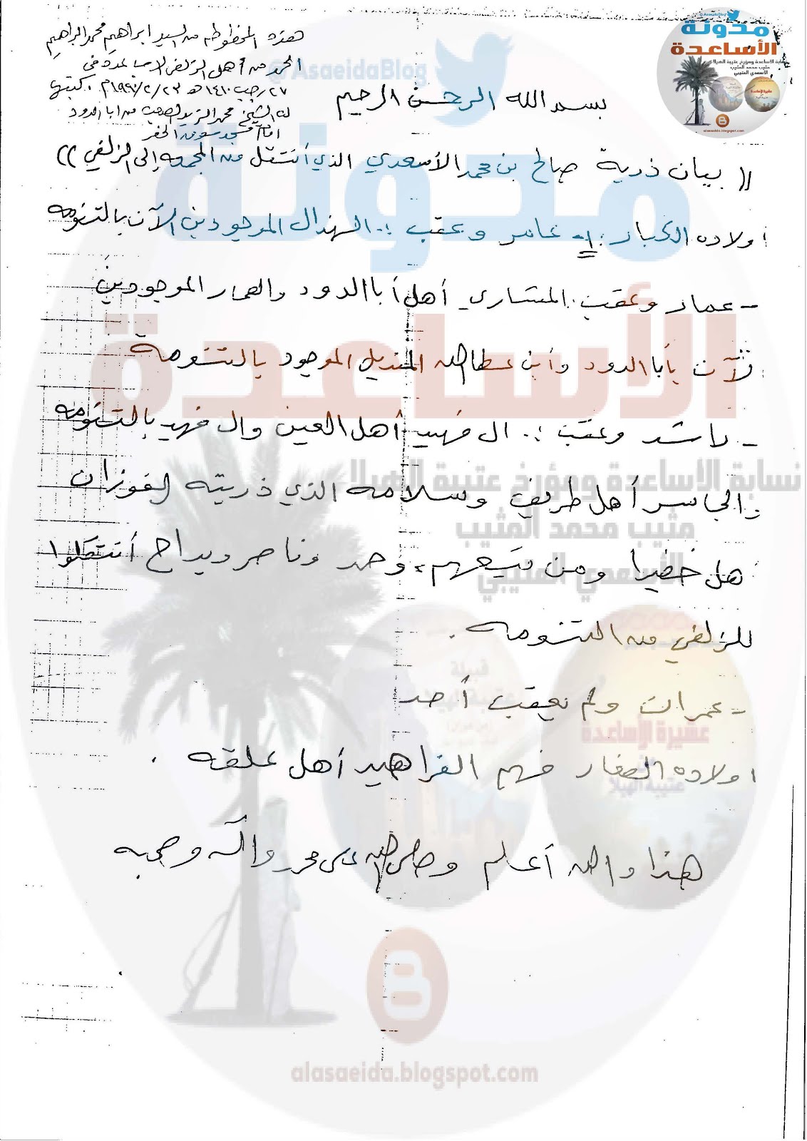 مساحة للباحثين المجموعة الأولى مخطوطة في بيان ذرية صالح بن محمد الأسعدي