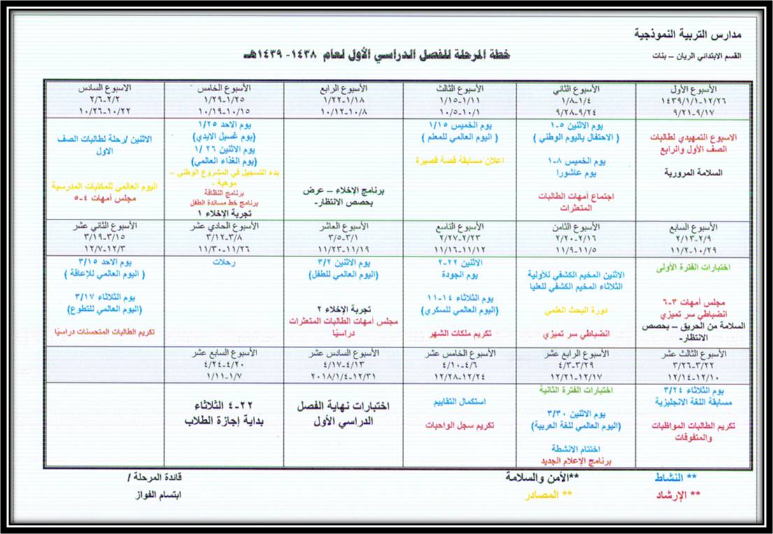 الابتدائية بنات الريان خطة المرحلة الابتدائية للفصل الدراسي الأول من عام 1438 1439هـ