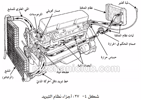 تبريد محرك الاحتراق الداخلي Internal Combustion Engine Cooling نظام تبريد محرك الاحتراق الداخلي يستخدم أما الهواء أو السائل لإزالة مخلفات الحرارة للمحركات الصغيرة أو الأغراض الخاصة يستخدم تبريد الهواء Air Cooling مما يجعل المحرك خفيف وبسيط نسبيا نظام