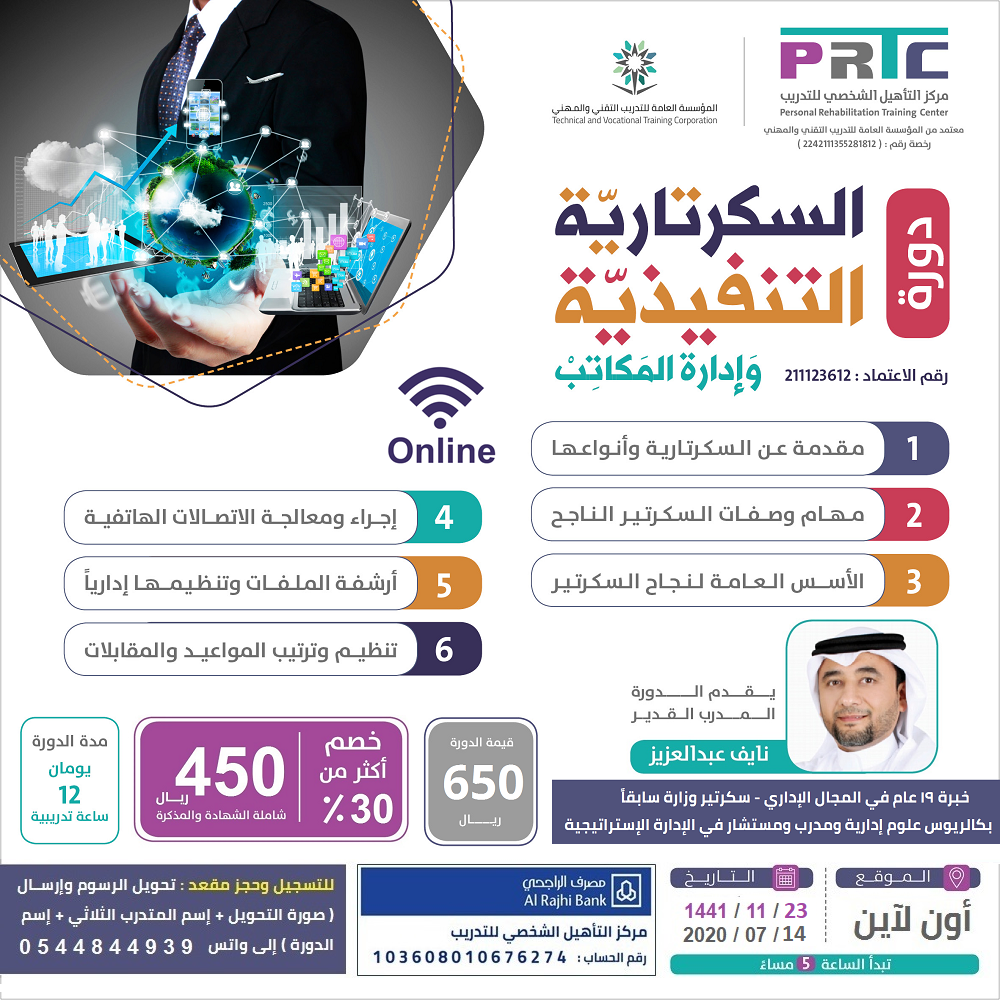 يتشرف مركز منتجع التدريب الدولي itr بتقديم دورات فى مجال السكرتارية وادارة المكاتب التى سوف تعقد خلال العام 2021 2020. السكرتارية الإدارية وادارة المكاتب. المنهج المتكامل فى تنمية مهارات السكرتارية التنفيذية و فى تحقيق التميز الادارى. إشترك بدورة السكرتارية التنفيذية وإدارة المكاتب مدرب عربى محترف متمرس داخل الدوله مستوى لغة إنجليزية.