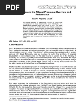 Pdf Saudization And The Nitaqat Programs Overview And Perfomance Journal Of Accounting Finance And Economics Vol 6 No 2 September 2016 Issue Pp 36 48
