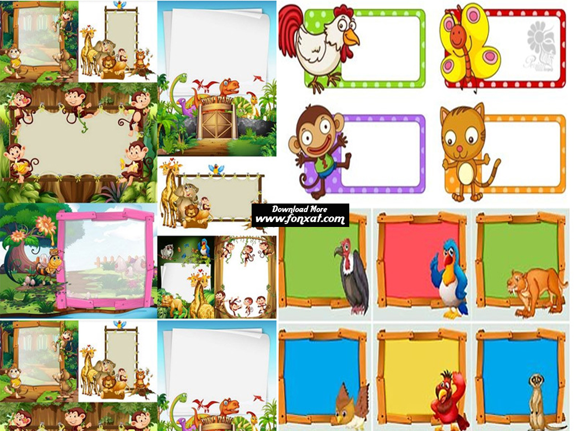 Download Set Of Vector Images Ready Template Frame With Animals Frame Design With Wild Animals Fonxat Gfx